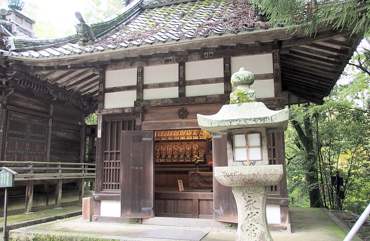 室町時代の建立。空海、良弁、淳祐の御影が安置されているそうです。江戸時代建立の毘沙門堂と比べるとごちゃごちゃしてなくてシンプルで素敵新緑。