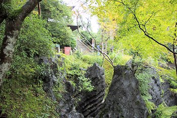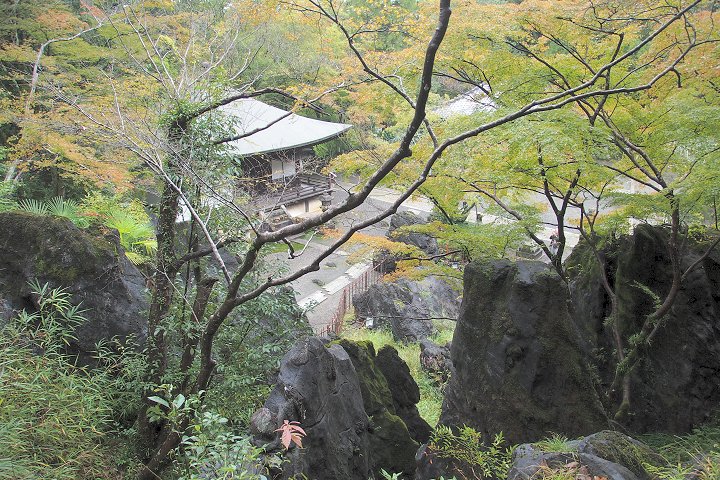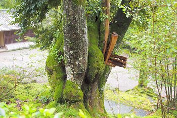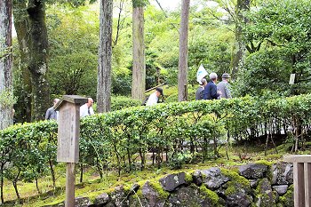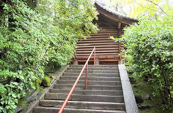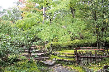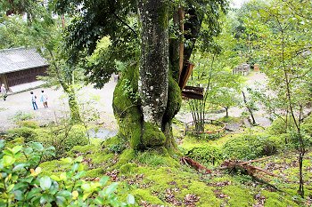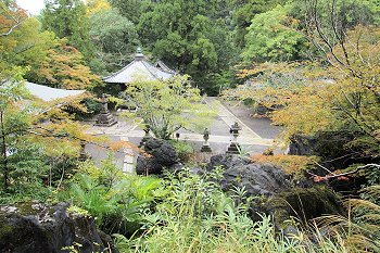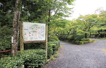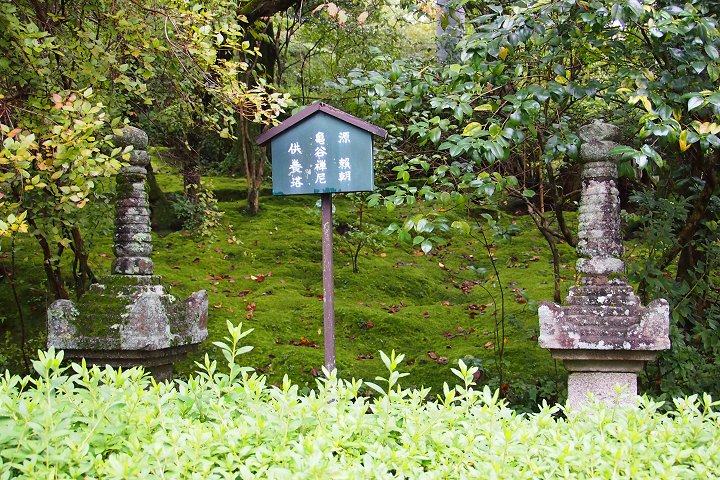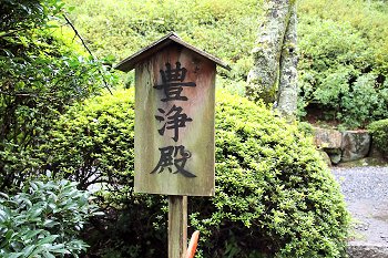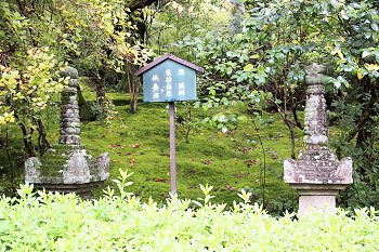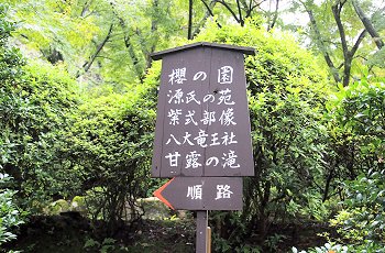 光堂方向へは、5人のご家族連れが先行でしたから、この方達に付いて光堂へ。到着と同時に「紫式部像」を求めて周辺をキョロキョロ。そうしますと、また「紫式部像 →」の表示板。う〜ん、ここからまた少し下った場所にありますようですねぇ〜