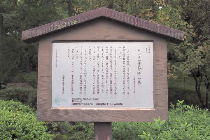 その左に紫式部供養塔。これは、石山寺で『源氏物語』を起筆した紫式部の供養塔。鎌倉時代の作だそうで、一番下層の4面に仏像が浮き彫りにされています。