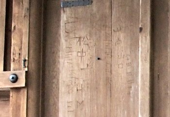 こんな国宝に落書きする人は居ないだろう…と思いながら、よくよく見てみますと、扉の部分に確かに落書きが(^-^;