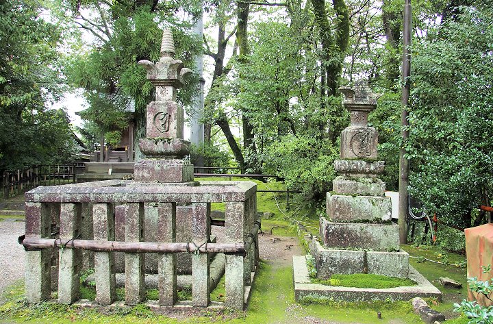 多宝塔の北西に並んで立つ2基の宝篋印塔は、右が源頼朝、左が亀谷禅尼の供養塔と伝えられています。