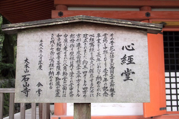 心経写経の永久保存のために建立されたもので、堂内には、ご本尊の「如意輪観世音菩薩半跏像」が安置されています。