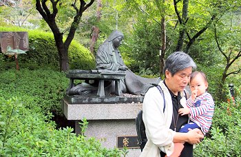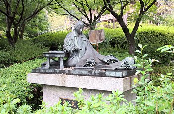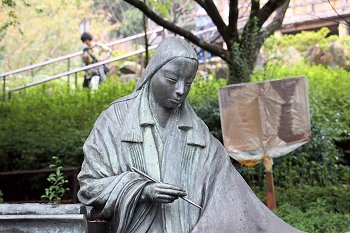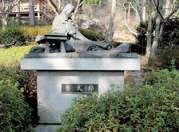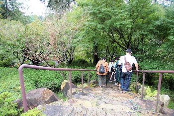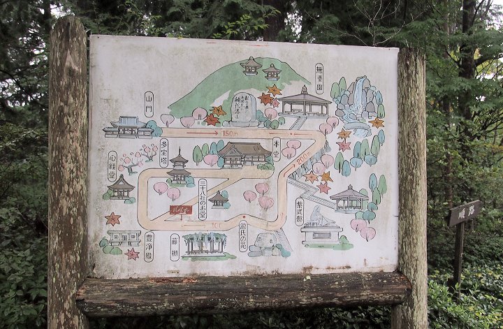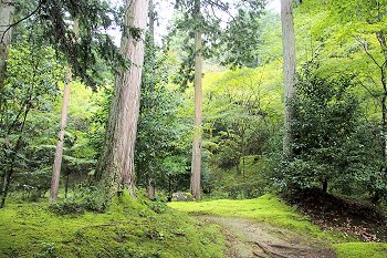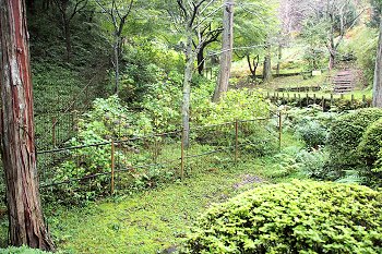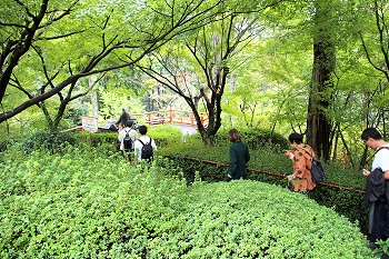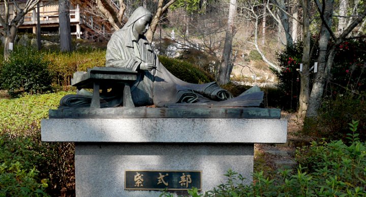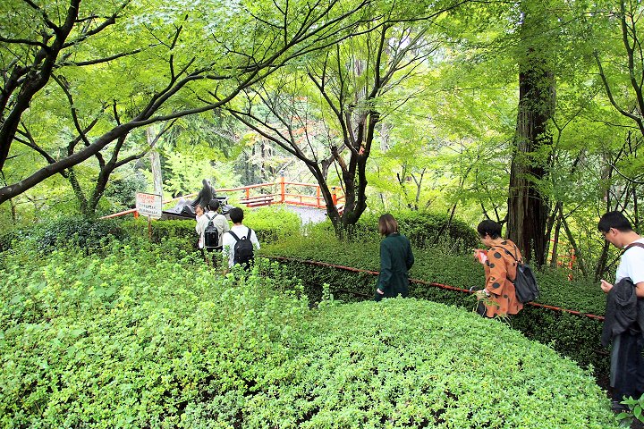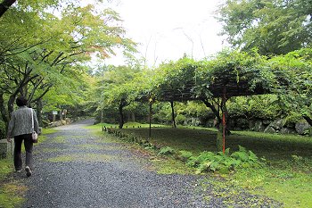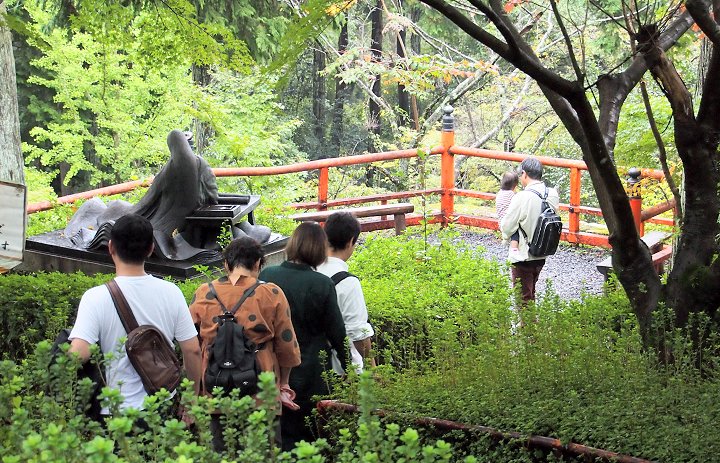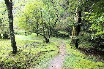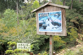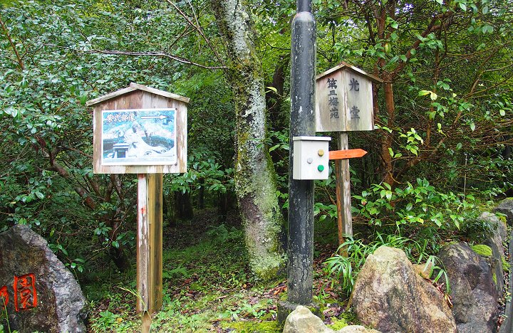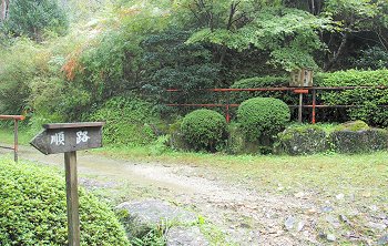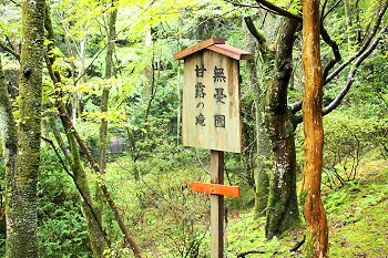 紫式部像とお別れし、「←順路」に従って下っていきますと、「無憂園・甘露の滝」の表示板が…で、その方向に進行です(^.-)☆