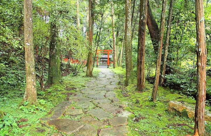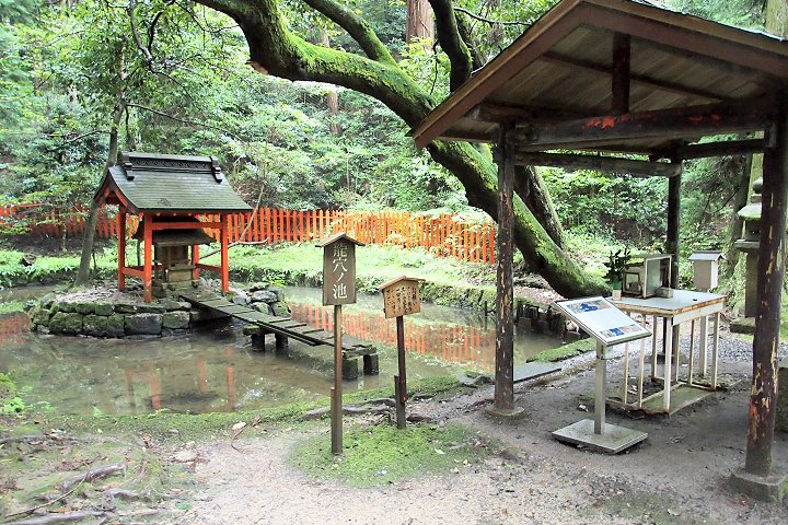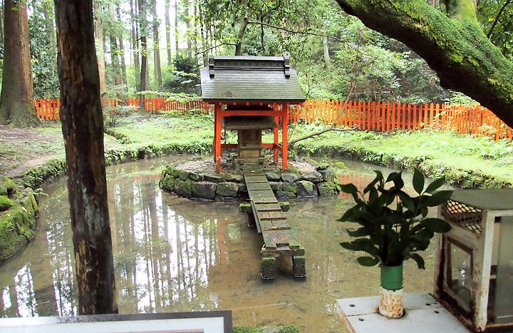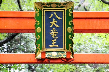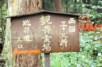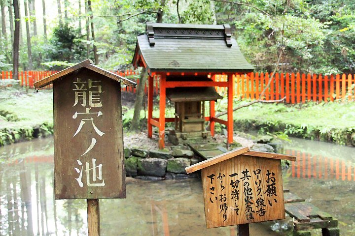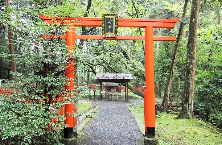 途中、「← 西国三十三所 観音霊場 巡拝道入口」の表示板が…でも、その方向には進まず直進しますと「八大竜王」の赤い鳥居。そして、その奥には小さい池の中に社が存在でありました。