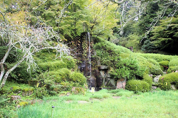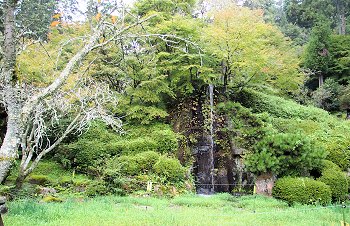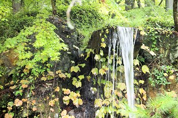 無憂園の中にある滝。休憩所から滝を眺めることができるので一息つきましょう。