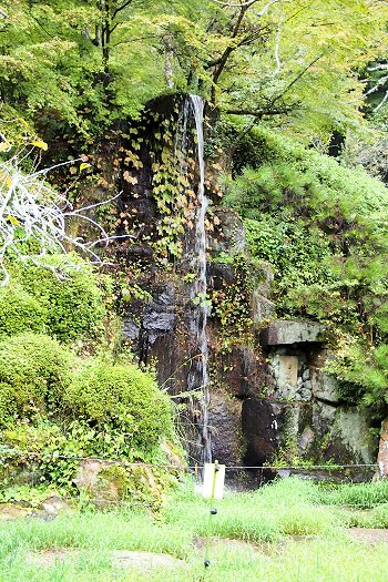 甘露の滝は石山寺内にある人工滝である。山門からほぼ真っ直ぐ歩くと右方に本堂があり、甘露の滝はその先の無憂園の奥に落ちている。なお、駐車料金600円と入山料500円が必要である。