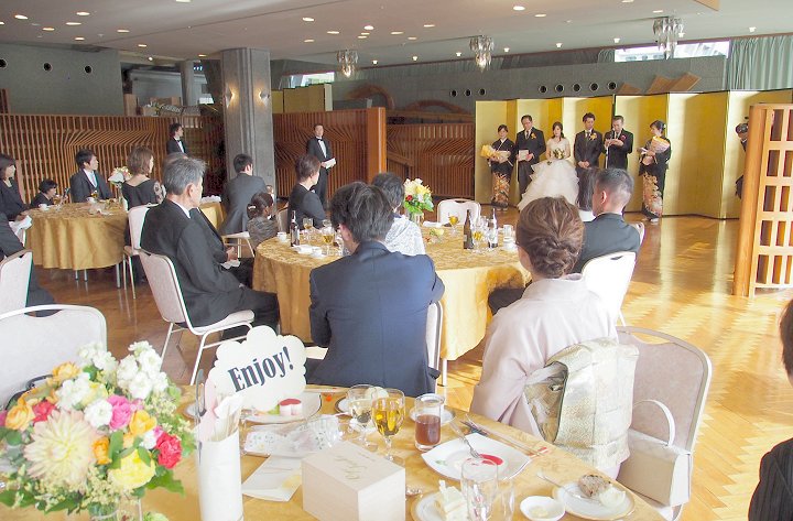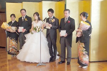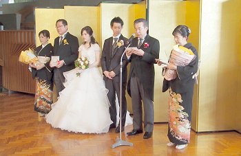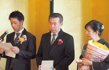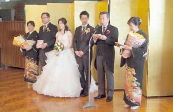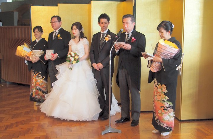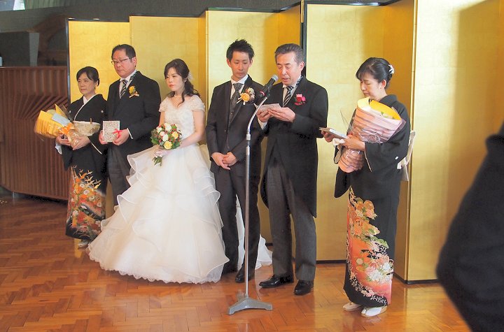 新しいご夫婦にも、今からの人生設計・夢があるものと思います。その夢の実現に向かって、お二人で協力しながら助け合いながら、いつまでもお元気で、明るい・楽しい・笑いの絶えない家庭を築いて行って貰いたいものであります。