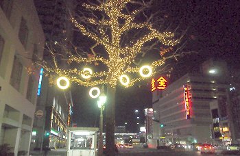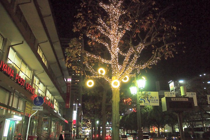 それでは、久松通り経由で帰る事に致します。福山郵便局前の歩道のイルミネーションもパチリ(^.-)☆