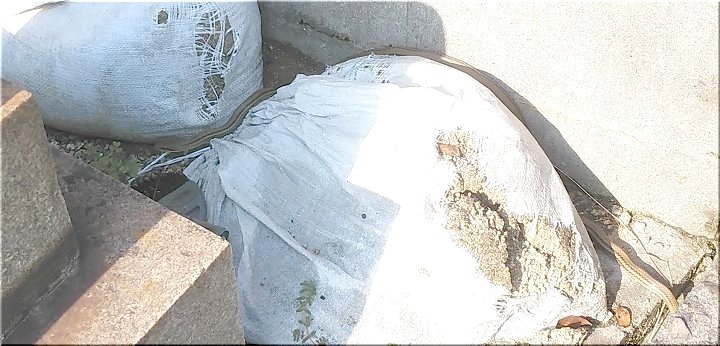 何処に行ったのだろう?…と、周囲をキョロキョロ。うん、うん、いましたネ。土嚢の片隅に(^-^)