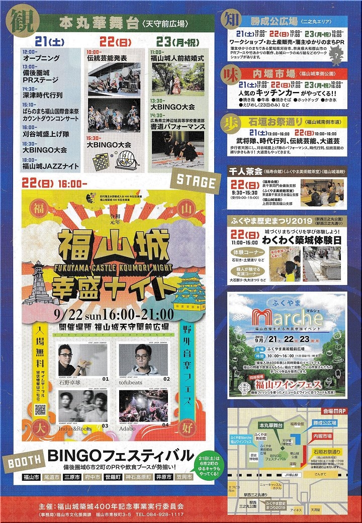 9月21日(土)、本丸華舞台(天守前広場・ステージ)で行われる「備後圏域PRタイム」のステージPR時間が一部変更となりました。
