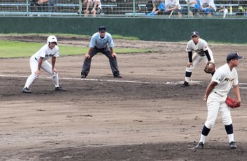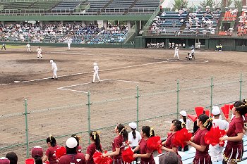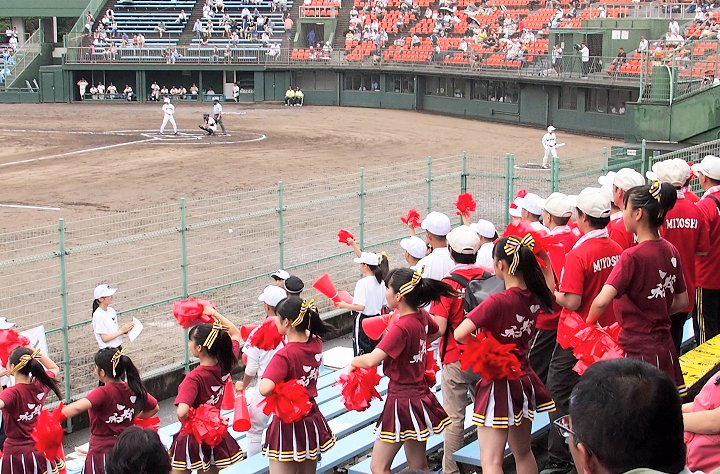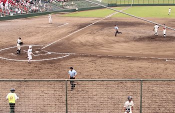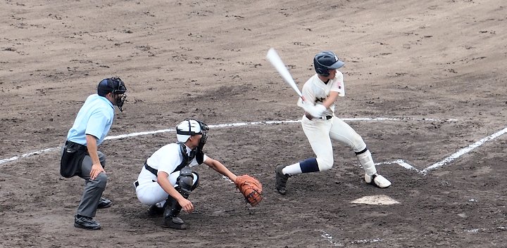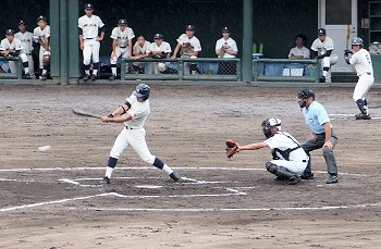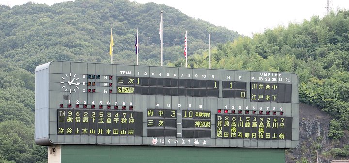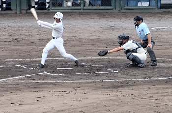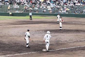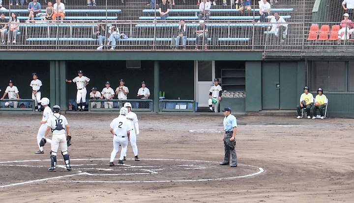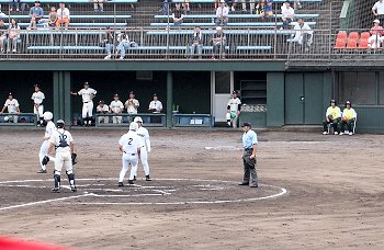 1回の三次高校の攻撃ですけど、う〜ん、幸先良く1点先取。続いて2回にも小刻みに1点を加点の三次高校。