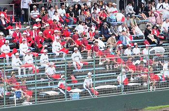 応援団の皆様も、力が入りますネ。GONsanは、この方達の近くで観戦ですから、熱気がモロに伝わってしまいます。この調子で展開しますと宜しいですねぇ(^-^)//"
