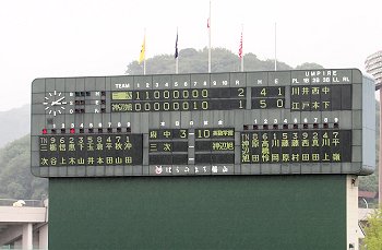 暫くネット裏での観戦をしておりましたGONsanですけど、う〜ん、また降雨が…仕方なく、またまた移動のGONsanで、今度は1塁側内野席に(^.-)☆