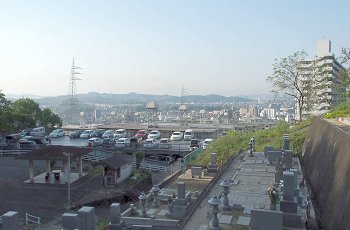 いつものように一服しながら、我が町を眺望です。そして、周辺の墓地も…