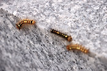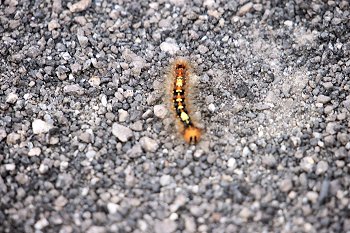 この画像ではハッキリと分かりませんけど、地面に顔を近づけますと、こんな毛虫が沢山這っていますから…