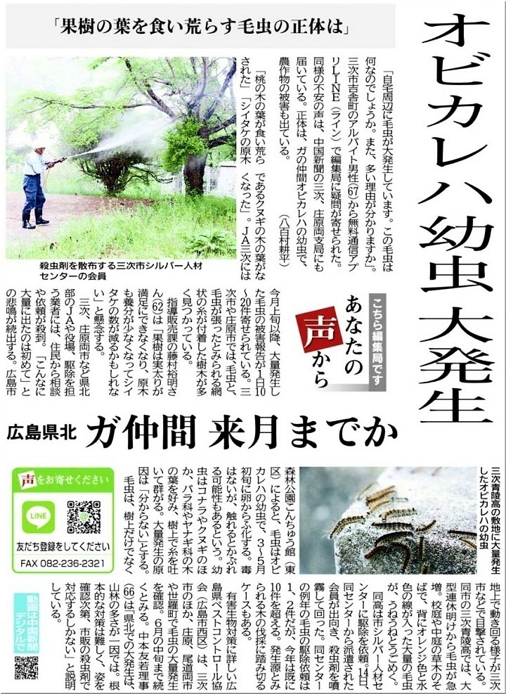三次市や庄原市で大量発生していますようですげど、「こんなに大量に出たのは初めて」との事のようであります。