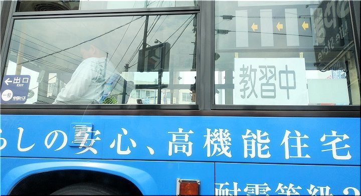 で、その際に車輌に眼を向けますと、車輌の窓に『教習中』の張り紙が…うん、うん、そぅでしたか…きっと、乗り合いバス新人運転手sanの教習・指導中でしたのでしょうネ(^.-)☆