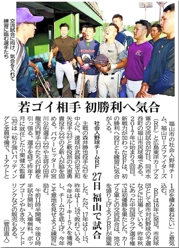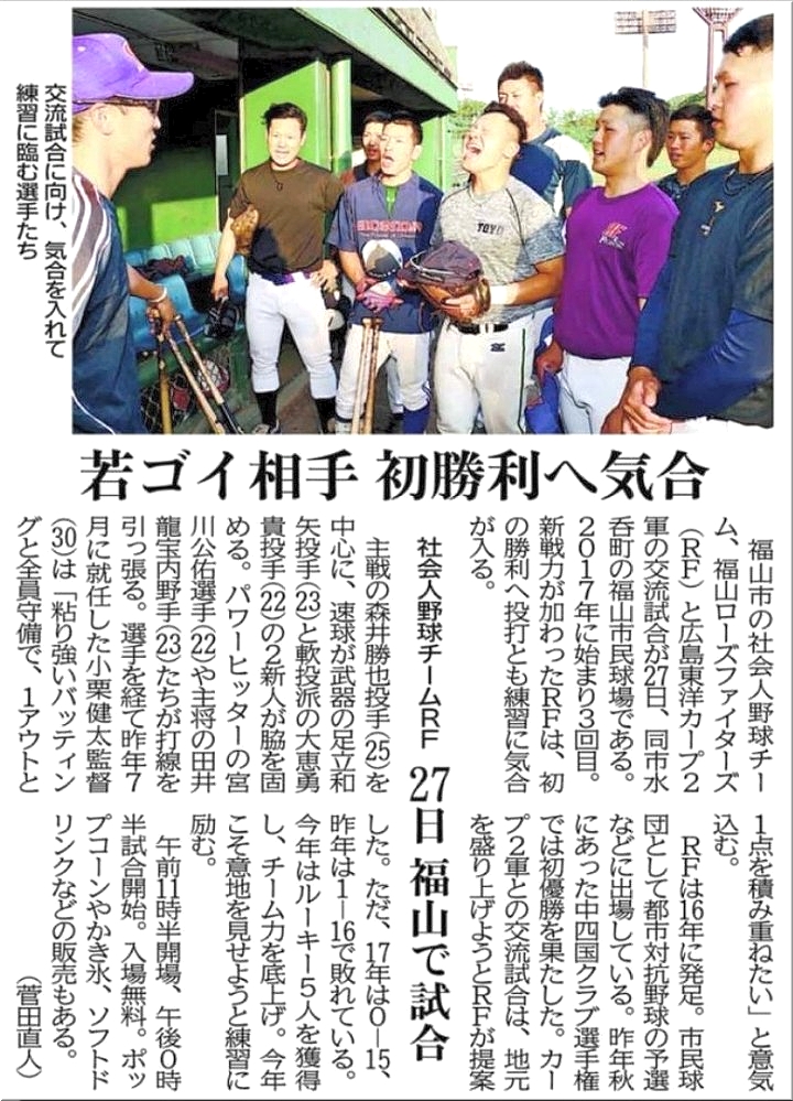 これも、本日の中国新聞朝刊記事に眼が止まりましたのですけど、ふん、ふん、5/26(日)に福山市民球場でウエスタンリーグの試合開催ですか…