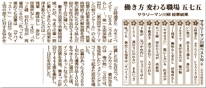 第一生命保険sanが毎回発表しておられます「サラリーマン川柳」…どの作品も凡て仲々面白いですネ(^_^)v