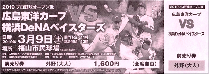 3/9(土)福山市民球場オープン戦「横浜DeNA×広島カープ」(^.-)☆
