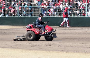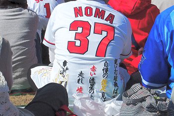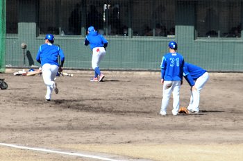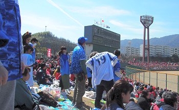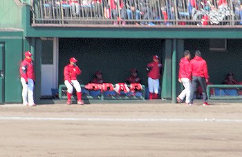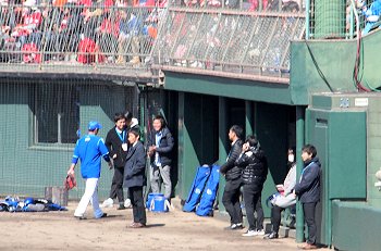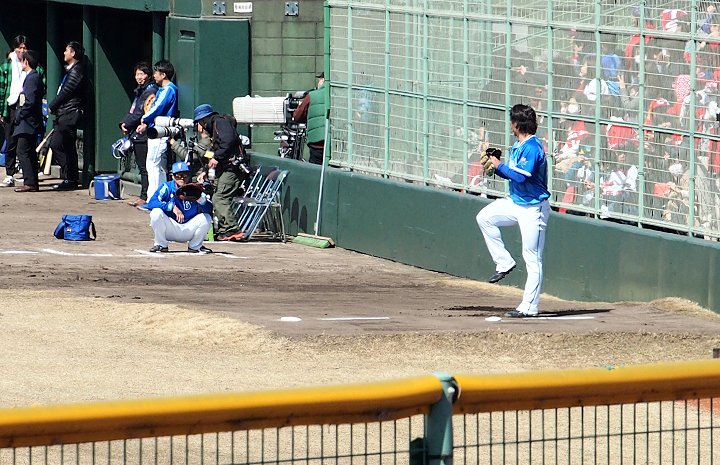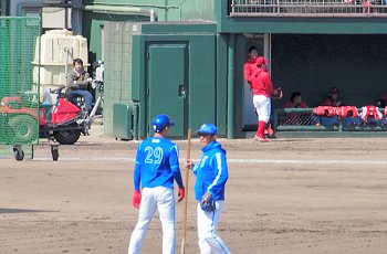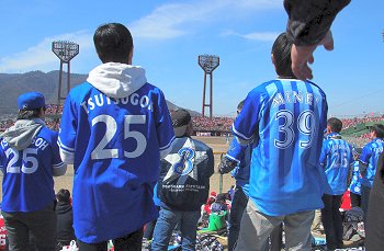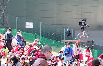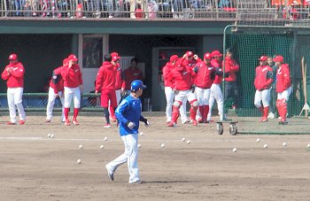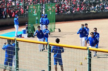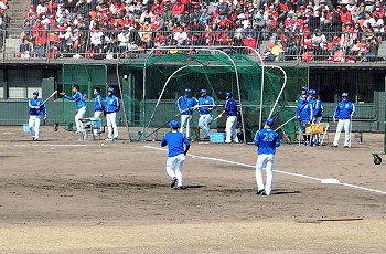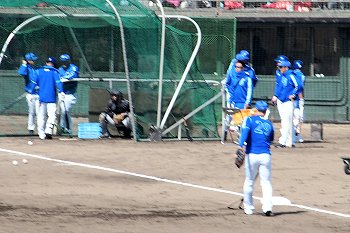 大概A.M.11:00の開門で球場内に入りますと、眼に入りますのが相手チームの練習光景です。練習していますベイスターズの選手の皆様を誰とはなく眺めておりましても、それなりに楽しいものであります。