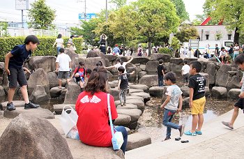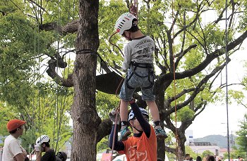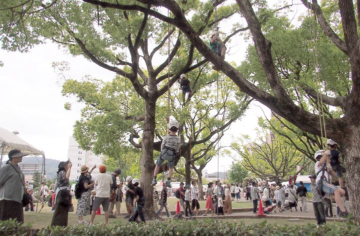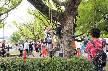 本人は夢中で楽しんでいますけど、傍らで心配そうに見上げます保護者の皆様(^-^)こぅした遊びは、都心部では仲々出来ませんから、さぞ楽しいものと思います。
