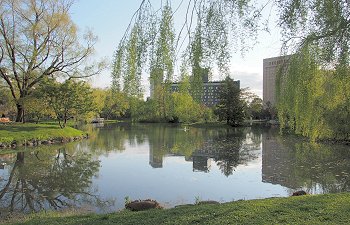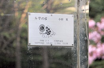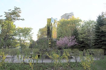 このオブジェは、南14条西4丁目の伊夜日子神社の裏側に当たる中島公園内に建立されています。制作者の小田 襄さんは1936年東京で生まれ東京芸術大学彫刻科を卒業ご数多くの作品を制作されていますがステンレスを使った彫刻が有名で国際的な金属造形作家のお一人です。