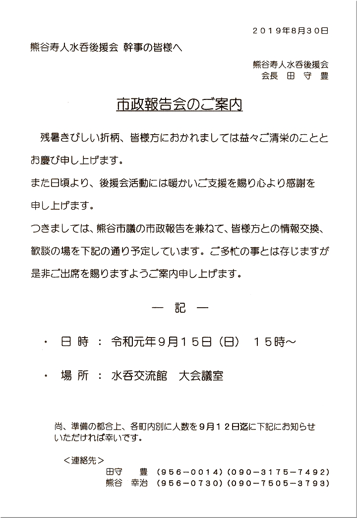 @9/15(“ú)‚̌ߌã‚ÍAŒF’JŽõl•ŸŽRŽs‹c‰ï•›‹c’·‚ÌŽs•ñ‰ï‚Å‚ ‚è‚Ü‚µ‚½(^.-)™