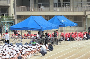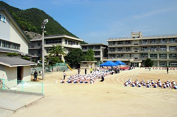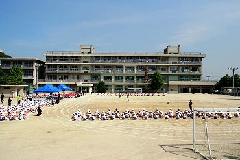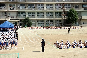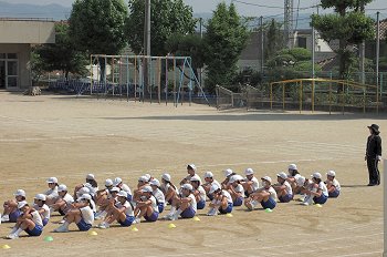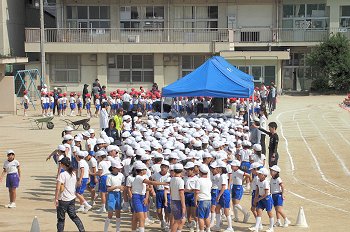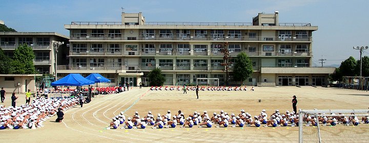 我が家を出まして小学校を横目に井上記念館・八幡神社・六方学園方向への歩行ルートとなりましたけど、小学校の校庭では5/26(日)の「春季運動会」も目前で、暑い日差しの中で練習中でありました。