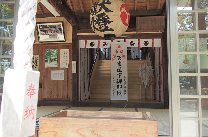 八幡神社では、散策の安全を祈願です。ここでも「奉祝 天皇陛下御即位」の垂れ幕が…