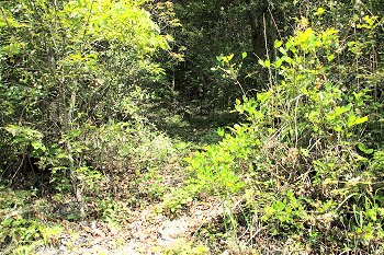 また暫く進みますと、右側斜面に畑が存在です。が、ここもまた荒れ放題。昔は畑として耕しておられましたのでしょうけど…