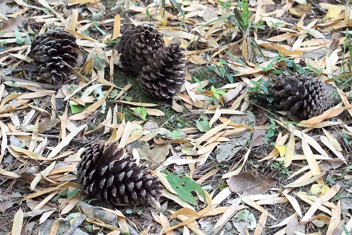 時たま町内の知人から大きな松かさを貰うのですけど、どこで採って来られるのだろう…と思っておりました。ふ〜ん、ここに来ますと、いくらでも大きな松かさが拾い放題です(^_^)v