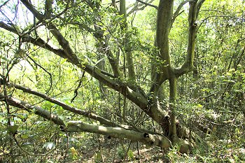 黙々と進んでいますと、ヤッと前方が開けて来ましたような感じにも…そして、ヤッと雑木林から抜けます瞬間が近くなったような気配も…