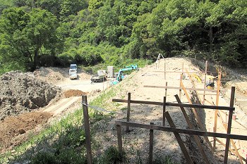 6月の梅雨期も近付いて来ましたので、急ピッチで溜め池の修復工事をしておられますのでしょうか…昨年7月の西日本豪雨で堤防が決壊したのでしょうか…とにかく、補強工事か修復工事が進行中。