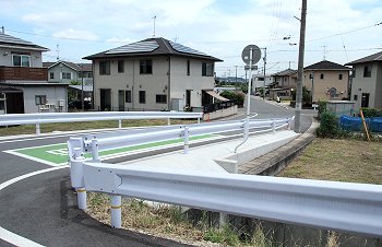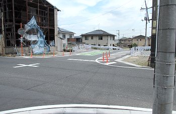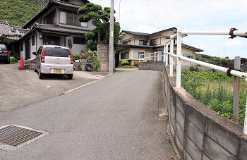 茶色屋根のお宅の、前か後ろから車の進入路がありますのでしょうねぇ〜