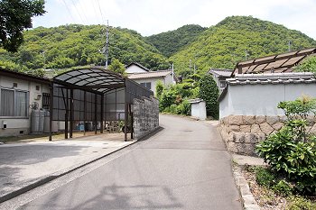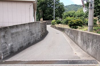 今は、物置きか何かに使用しておられますのでしょうか…ブロック造りの建物の屋根部分は、進入路と接続し地続きにしておられまして、これを駐車場として使用しておられますようです。