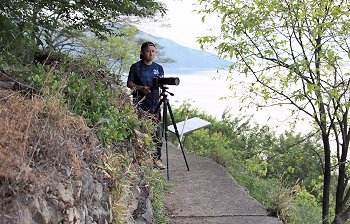 今年は毛虫の異常大量発生ですから、ここも例外ではありません。早速、到着と同時に三脚設置場所辺りを這っています毛虫を踏み付けまして抹殺です。でも、またスグに毛虫が近寄って来ますので安心は出来ません。