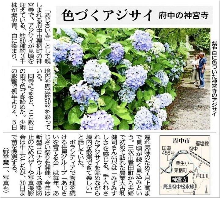 6/16(火)の中国新聞sanの朝刊記事に誘われて、6/20(土)は、府中市「あじさい寺(神宮寺)」を散策となりました(^.-)☆