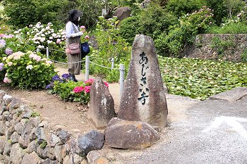 四葩(よひら) (紫陽花 あじさい) 平成12年6月 竹下陶子』と刻まれた小さな石標が設置されてありました。いゃぁ、お姉さんがカメラを向けておられなければ、GONsanは見落とすところでありました(^-^;