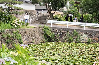 それでは、散策開始です。駐車場の上に小さな蓮池が…皆さんカメラを向けておられますので、蓮池を見廻しながらGONsanもパチパチと(^.-)☆