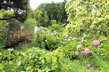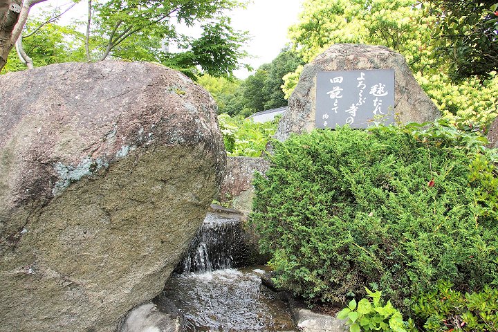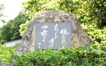 毬たれてよろこぶ寺の四葩とて(句碑の俳句)