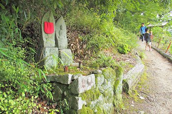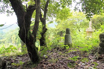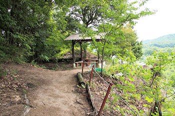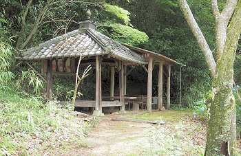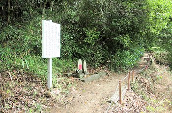 看板から山道を少し進みますと休憩所、その先が孝霊塚でありました。