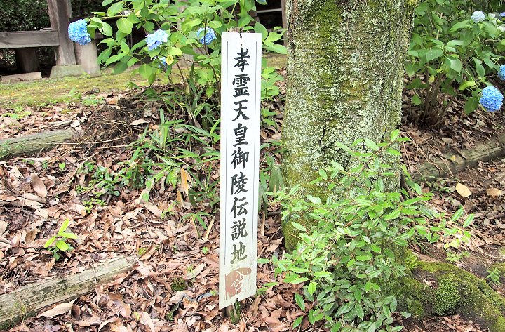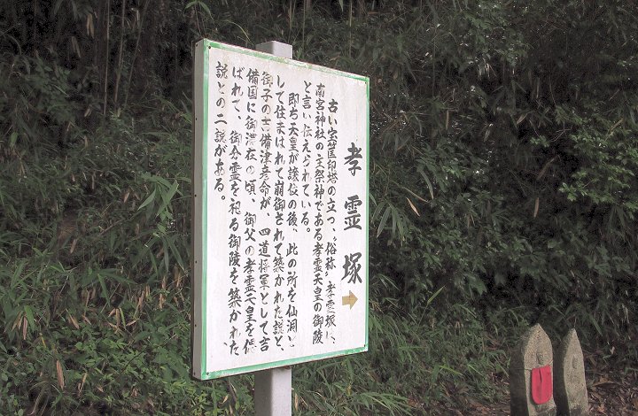そして、休憩所の先に孝霊塚の看板が存在です。これには、
