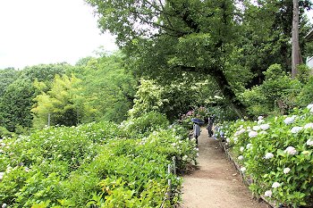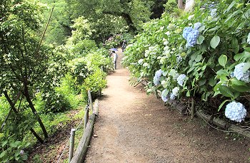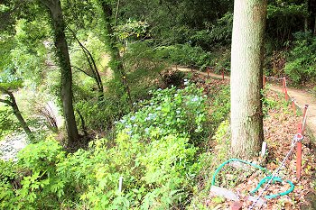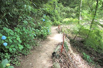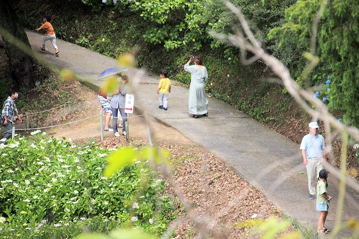神社下の紫陽花へ遊歩道を進んで行きますが、先ほどまで何人かの方々がおられましたけど、誰もいなくなりましたので、難なく嫁さんの場所確認。