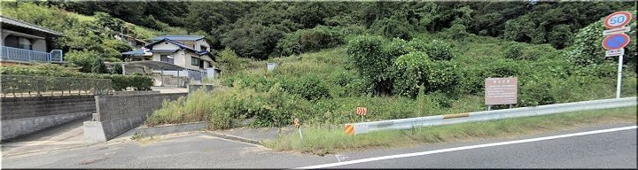 走行ルートは、笠岡バイパスから海岸沿いを走行し寄島へ。寄島町漁港の少し先から左折し山側へ走行して行きますと、程なく道路沿いの「殿山古墳」案内表示板にと到着です。