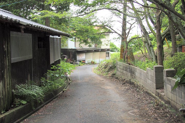 仕方なく、側溝に沿って左側の民家方向に舗道を進んでみますけど、やはり古墳への進入路はありません。