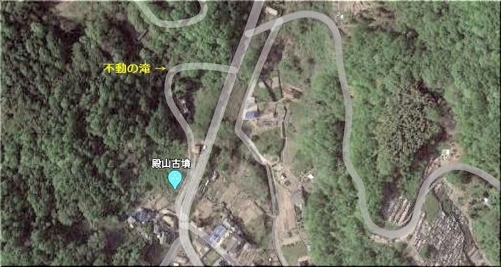 殿山古墳の見学後は、県道284号と古墳との間に狭い道がありまして、この道を少し北上しますと「鳴滝不動尊」が存在。この「鳴滝不動尊」脇の「鳴滝不動の滝」を見学です(^.-)☆