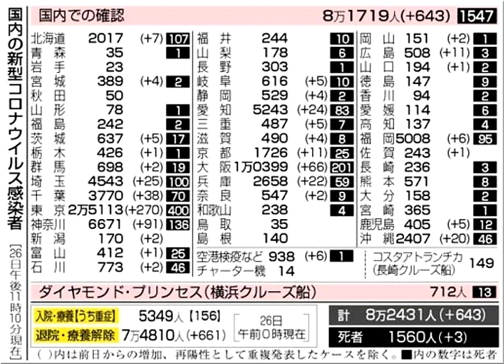 中国新聞sanの速報によりますと、昨日、福山市で76例目の感染者が発生しましたようです。