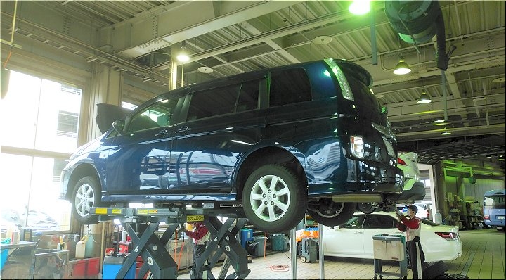 予約しておりましたので、定刻に広島トヨタsanに持ち込みで、いつものように点検されますのを見物です。