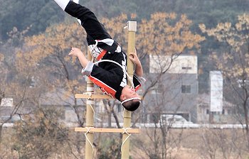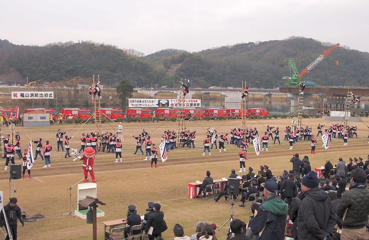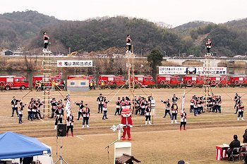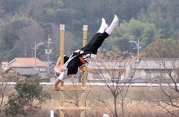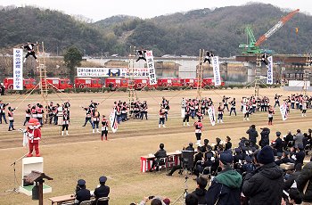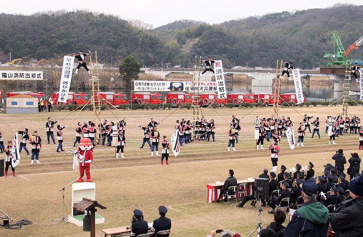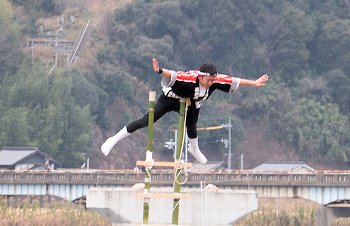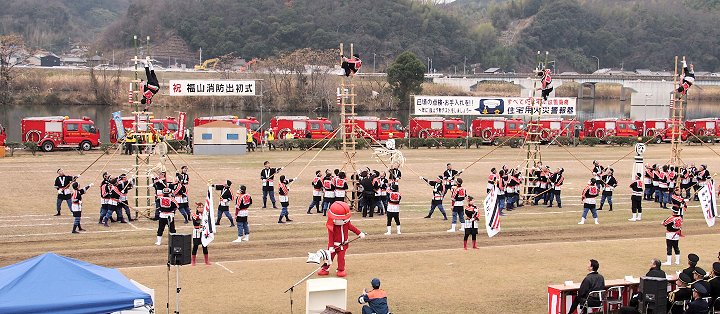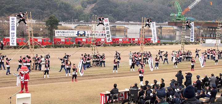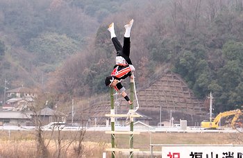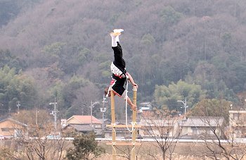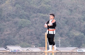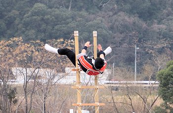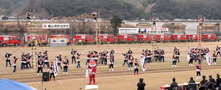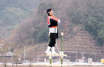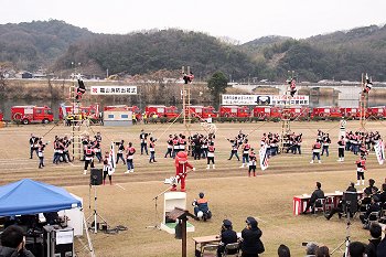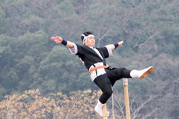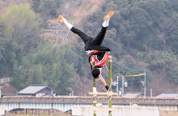 GONsanなんぞは高い所は全くダメなんですけど、日頃から練習しておられますこの方々は、いとも簡単に演技を披露。下でハシゴを支えておられます方達との呼吸もピッタシ(^_^)v
